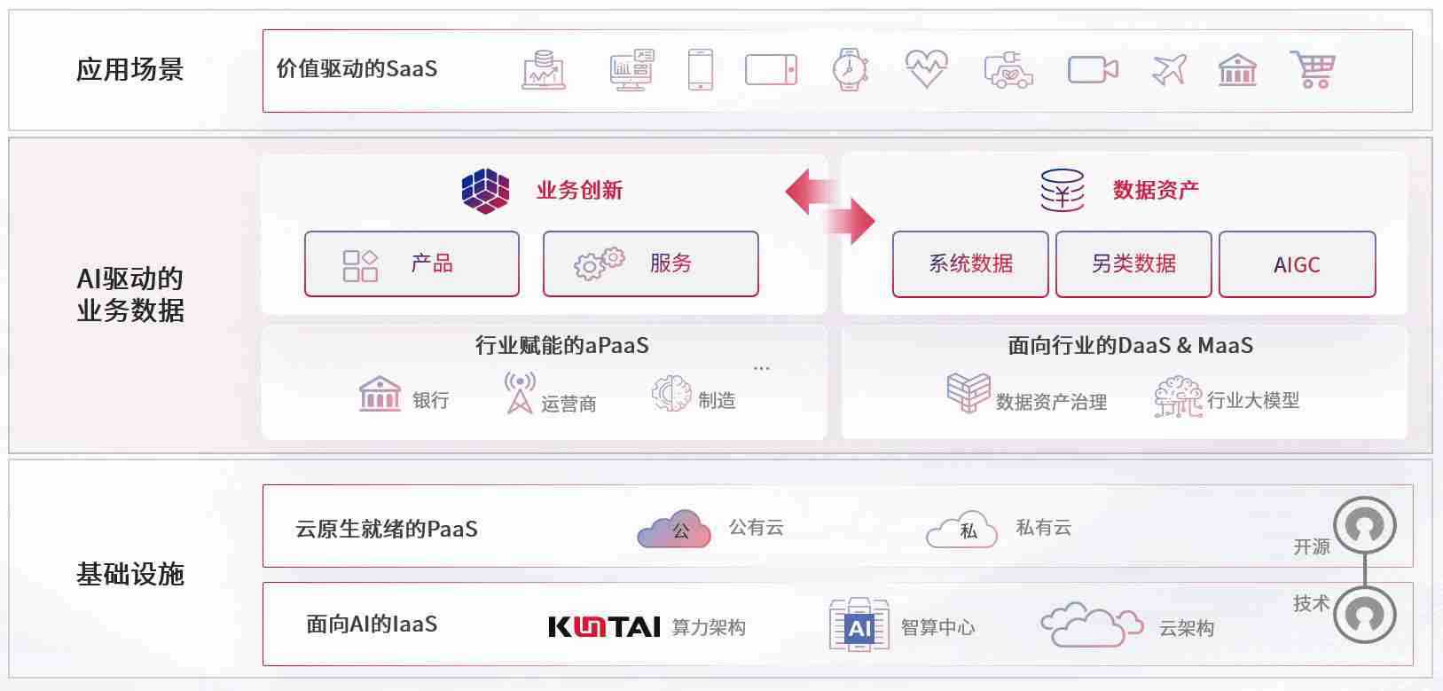 数字时代,,,,围绕企业数字化转型的关键要素,,,,老哥稳数码开创性的提出数云融合战略和技术体系框架,,,,着力在云原生、、、数字原生、、、AI原生和信创产业上架构产品和服务能力,,,为处在不同数字化转型阶段的快消零售、、汽车、、、、金融、、、医疗、、、、政企、、、、教育、、、运营商等行业客户提供泛在的敏捷IT能力和融合的数据驱动能力,,,构建跨界融合创新的数字业务场景和新业务模式,,,助力企业级客户建立面向未来的核心能力和竞争优势,,,,全面推动社会的数字化、、、智能化转型升级。。